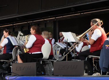 Zweifelslos war der Auftritt der FUNKY MARYS aus Köln der Höhepunkt des musikalischen Unterhaltungsprogramms am Nachmittag. Seit 2002 sind diese fünf starken Frauen im Kölner Karnevalsgeschehen eine feste Größe. Die diesmal mitten im Sommer echte rheinische Karnevalsstimmung nach Roisdorf brachten. Kein Wunder, dass getanzt und geschunkelt wurde und nur mit einer Zugabe konnten die FUNKY MARYS erst nach einer Stunde die Bühne verlassen. Doch schnell kamen die Damen nicht vom Festgelände weg. Viele Roisdorfer warteten schon hinter der Bühne geduldig auf die Marys. Es wurden fröhliche Selfies mit den gut gelaunten fünf Ladies gemacht und zusätzlich zahlreiche Fanautogramme bei den Kölnerinnen eingesammelt.