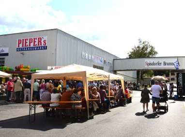 Mit den rheinischen Spezialitäten von „Onkel Fritts“ und den Leckereien von „Bakaliko Greek Food” konnten die Gäste an den beiden Versorgungsstationen deutsche und griechische Küche genießen. Der Getränkemarkt Pieper hatte seinen Getränkestand extra dazwischen positioniert. Das führte bei so manchem Gast zur der anerkennenden Bemerkung: “Heute fühle ich mich in Roisdorf fast so wie in einem bayrischen Biergarten.”