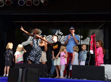 Die Bühne war inzwischen für den Ex-Roisdorfer Liedermacher und Sänger Willi Wilden frei gegeben worden, der aus seinen umfangreichen Repertoire an Liedern seine persönlichen Favoriten präsentierte. Die unmittelbare Beteiligung der Kinder war Willi Wilden ein besonders Anliegen und so rief er seine junge Fanschar auf die Bühne, um dort gemeinsam mit ihnen zu singen.