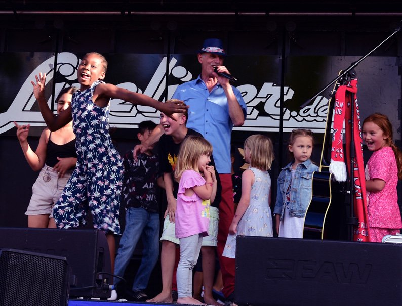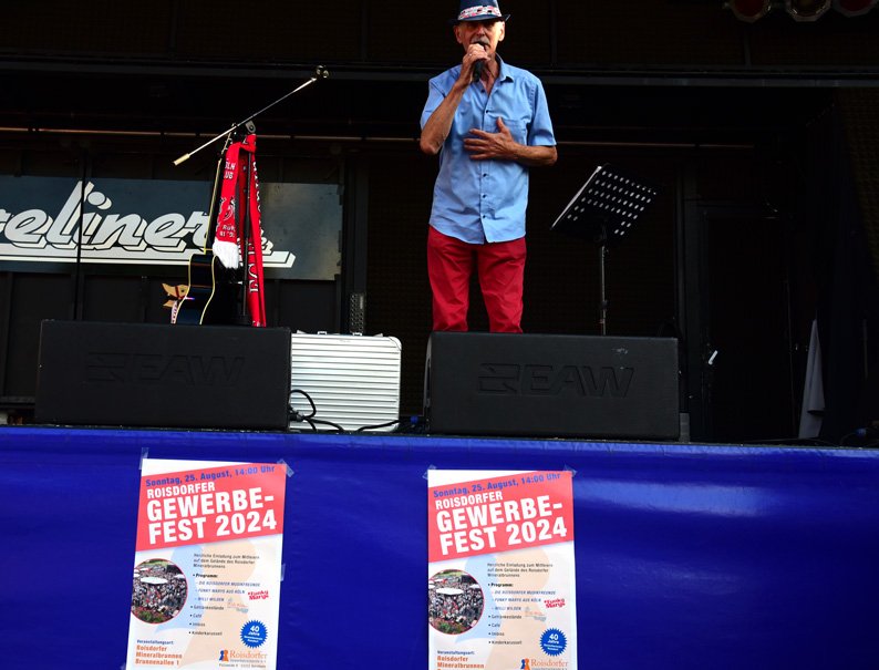 Die Bühne war inzwischen für den Ex-Roisdorfer Liedermacher und Sänger Willi Wilden frei gegeben worden, der aus seinen umfangreichen Repertoire an Liedern seine persönlichen Favoriten präsentierte. Die unmittelbare Beteiligung der Kinder war Willi Wilden ein besonders Anliegen und so rief er seine junge Fanschar auf die Bühne, um dort gemeinsam mit ihnen zu singen.